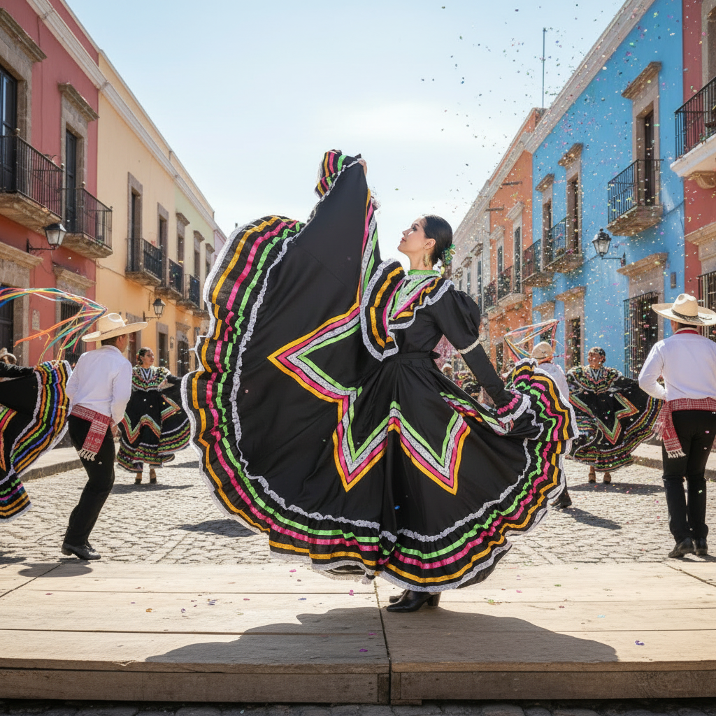 Dancing dress for women. Made in Mexico. Vestido de bailable estilo Jalisco doble vuelo para mujer. Hecho en Mexico.